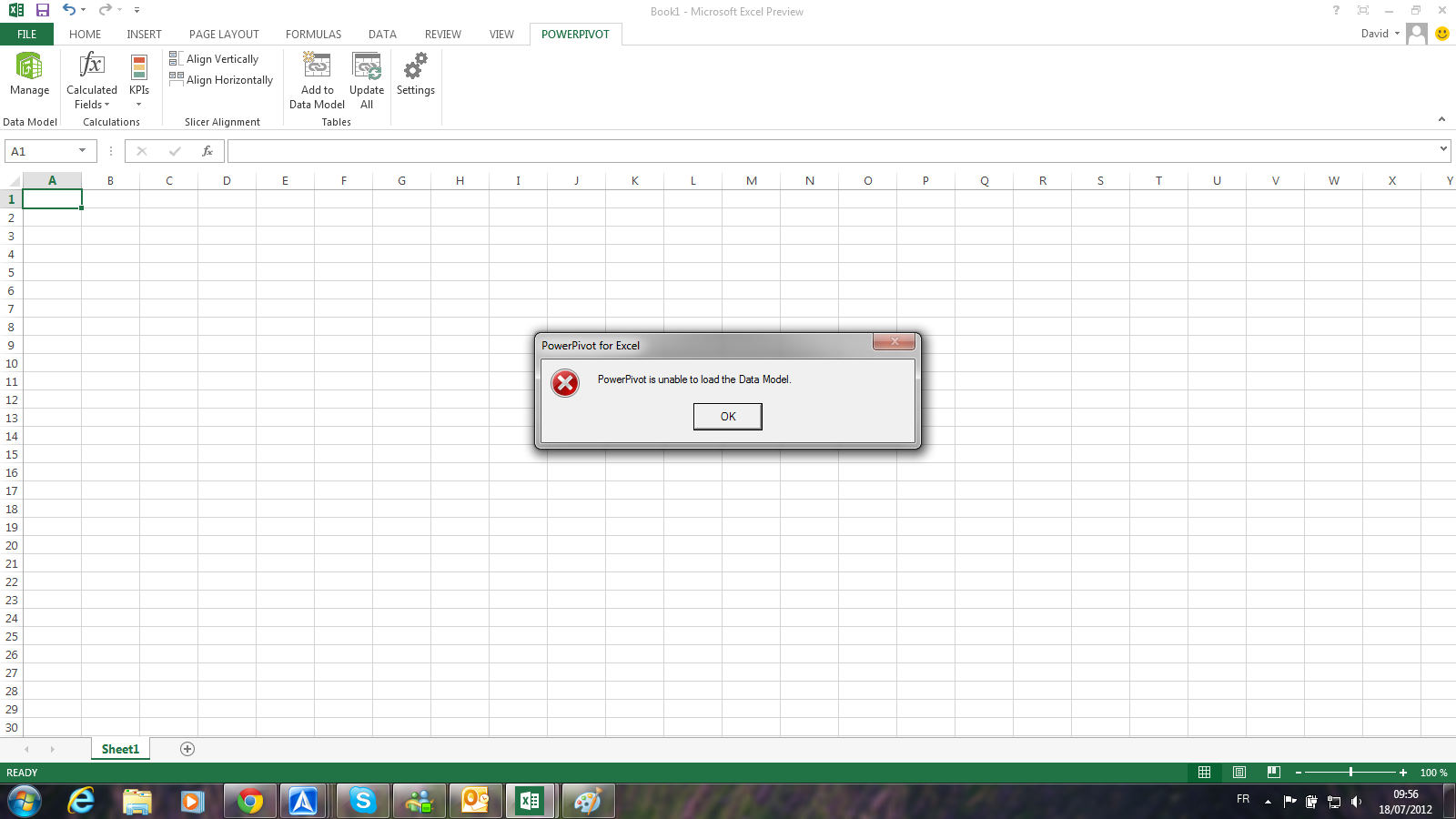 Malheureusement, je n’ai pas pu tester plus en détail, car j’obtiens un message d’erreur dès le clic sur « Manage ». J’ai eu beau réinstaller plusieurs fois la preview, j’obtiens le même message (PowerPivot is unable to load the Data Model). On mettra ça sur le compte de la pré-version. MAJ : en installant PowerPivot pour Excel 2010, ça a l’air fonctionnel, mais j’ai deux onglets POWERPIVOT dans le ruban (apparemment un 2010 et un 2013).