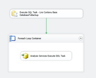 Le package sera constitué d’un SQL Task qui lit le contenu de cette table pour le mettre dans une variable de type objet, et d’un foreach qui bouclera sur ces différents noms et chaînes de connexions que l’on stocke dans des variables textes.