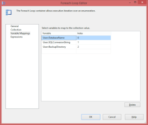 « BACKUP DATABASE [« + @[User::DatabaseName] + »] TO DISK = N' »+ @[User::BackupDirectory] + »\\ »+ @[User::DatabaseName] + ».bak’ WITH NOFORMAT, NOINIT, NAME = N' »+ @[User::DatabaseName] + »-Full Database Backup’, SKIP, NOREWIND, NOUNLOAD, STATS = 10GO »