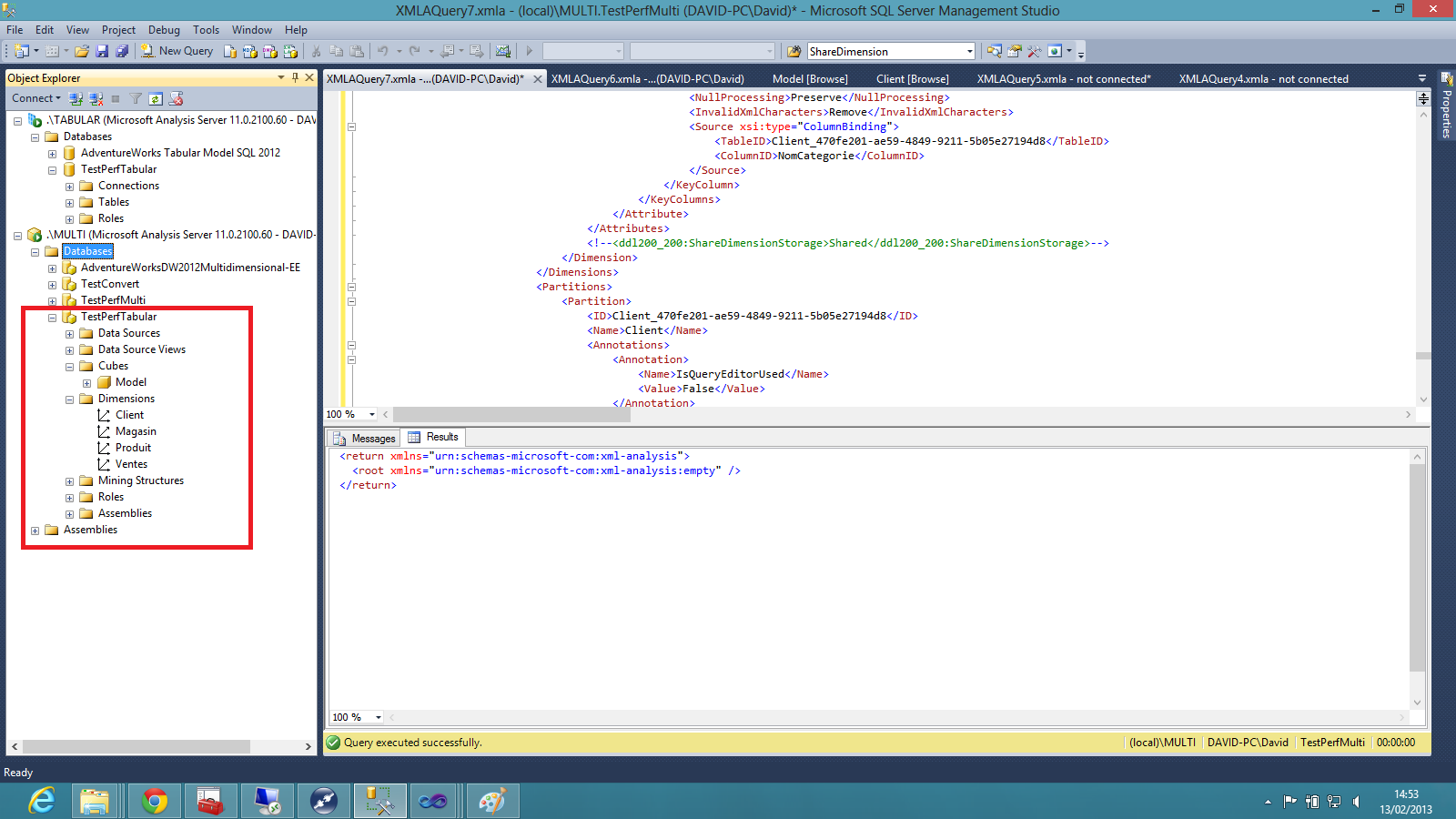 Si vous avez suivi, lors des Techdays 2013, l’excellente session sur Analysis Services 2012 animée par Messieurs François Jehl et Romuald Coutaud, vous avez pu constater que le parser XMLA pour les modèles tabulaires et multidimensionnelles est le même.