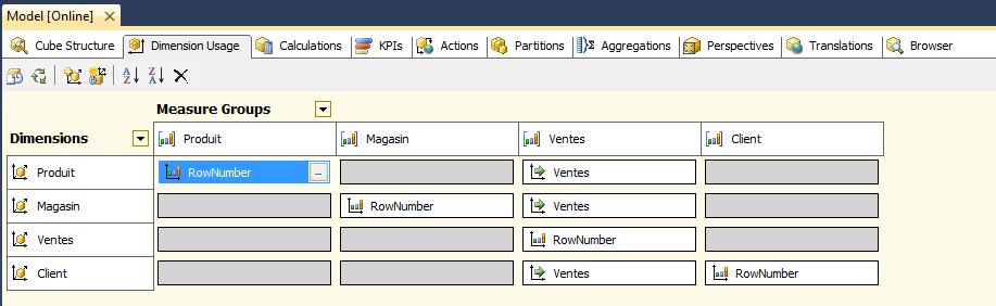 – ce qui concerne les relations entre dimensions : j’avoue que je n’ai pas vu l’utilité en mode multidimensionnel. Je pensais au début qu’il s’agissait du dimension usage du cube, mais apparemment ce n’est pas ça car il y en a un de défini à l’ouverture